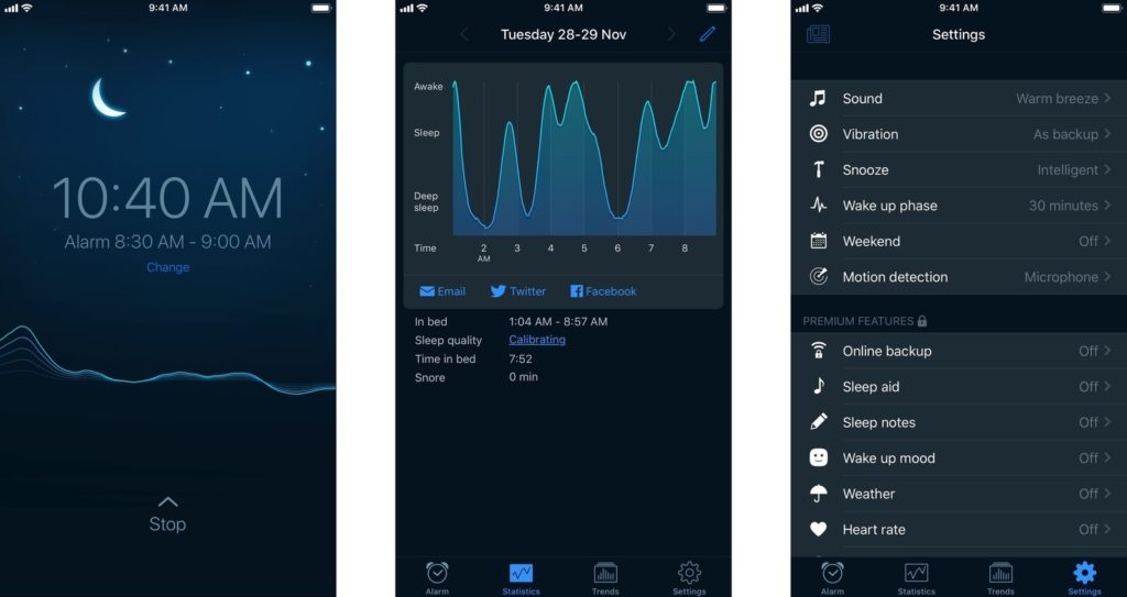 Sleep tracking, sleep statistics and relaxation app all rolled up in one. Sleep Cycle is your sure bet, download this app if you desire a sound sleep daily and the ability to track your sleeping patterns. This application analyses sleeping modes, displays sleep data at a glance and presents you with an option to back up the statistics for later viewing/accessibility.