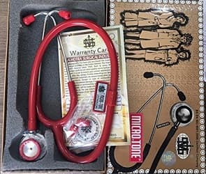 In the section of mid-range and genuine stethoscope, you can easily find the name of the Hi-Tech Msi Microtone Stethoscope. This red color stethoscope is made up of genuine quality material. With the help of aluminum alloy anodized chest piece, you feel the better response to lower frequencies, which can make things easier for sure.