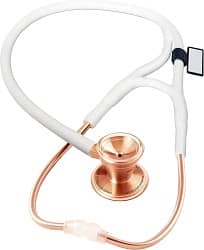 Most premium and the advanced stethoscope from the original Littmann is 3M Littmann Master Cardiology Stethoscope. It is the most advanced and expensive stethoscope of choice with plenty of color choices to grab the right one of need. Outstanding acoustics with a better frequency range makes it a highly advantageous product of choice as compared to the other units, which ensure the best use.